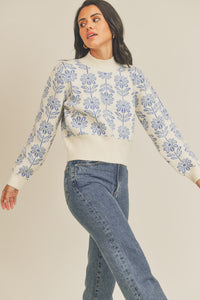 Flower Patterned Sweater Blue