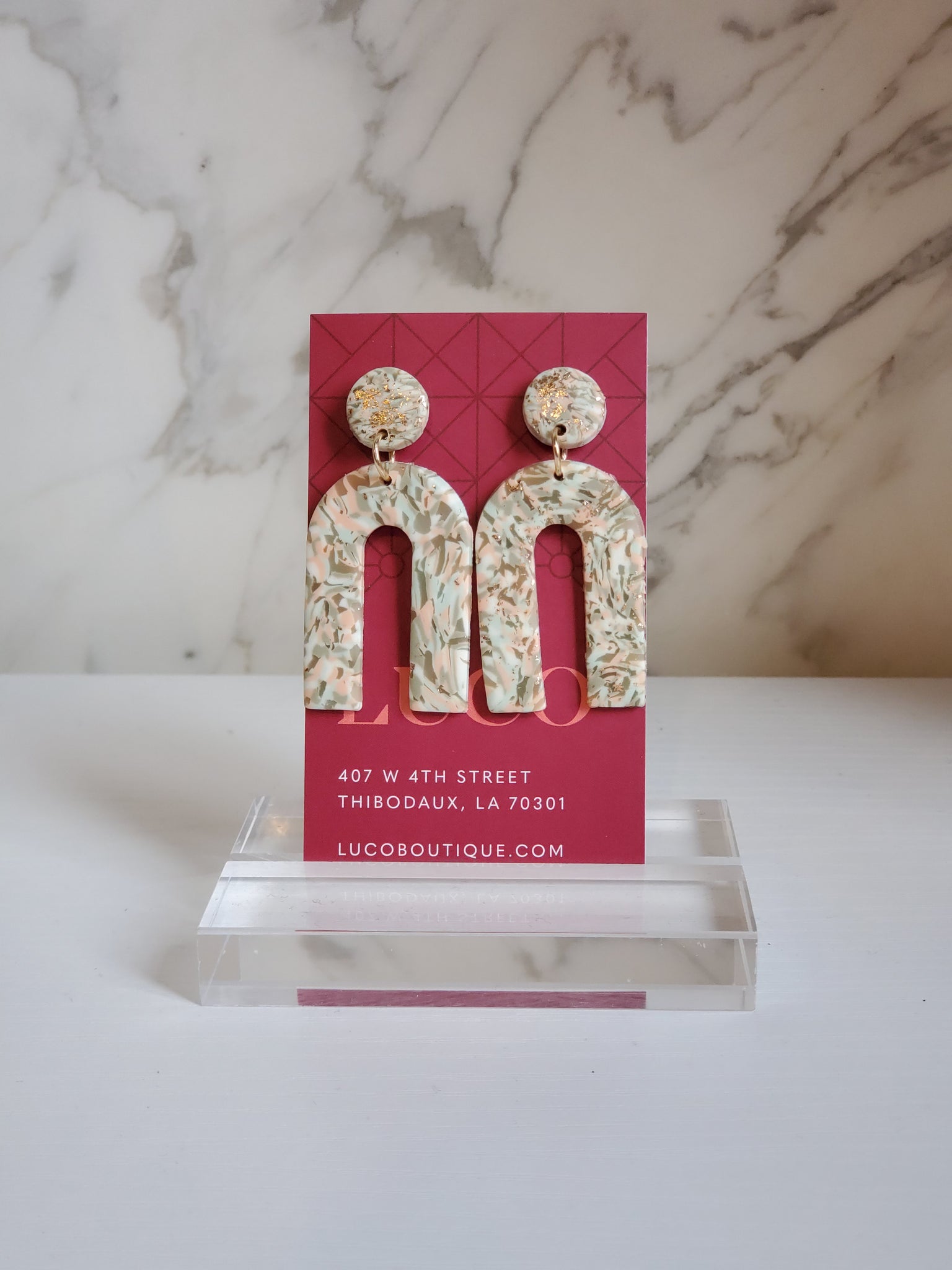 Mint, Gold, and Peach Geo Drop Clay Earring